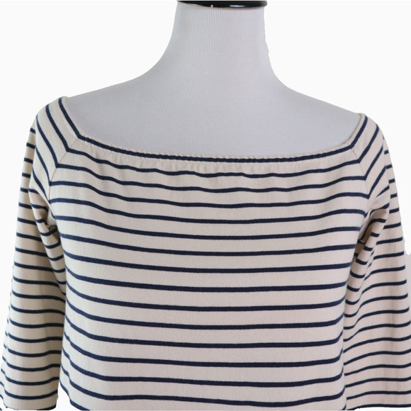 Theory Size M Aprine K Classic Stripe Off-the-Shoulder Top White Black