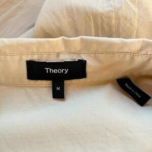Theory Size M Classic Straight Shirt Cotton Beige Button-Up Long Sleeve