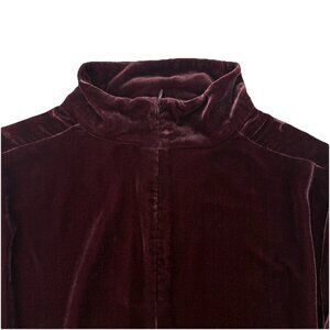 Theory Size S Mock Neck Collar Velvet Top Cutout Blouse Burgundy Silk Blend. See photos for details and measurements.
