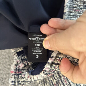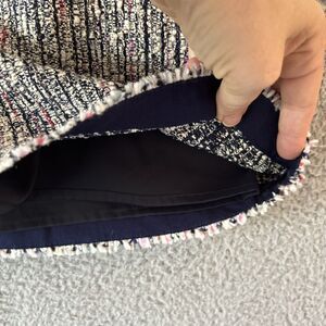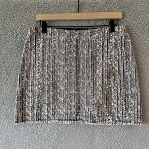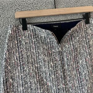 Theory Skirt 6 Small Mini Tweed Knit Raw Hem Exposed Zip Black White Red Boho