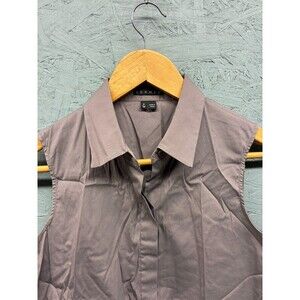 Theory Sleeveless Button Down Shirt Women’s Size P Taupe Collared Stretch Silk