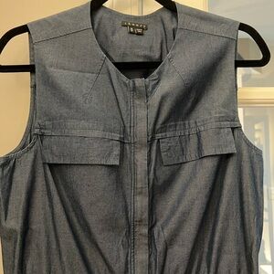 Chambray sleeveless elastic waist mini dress with pockets and full zip up front by Theory. Beautifully made, lightweight versatile dress. Size M EUC - looks new!