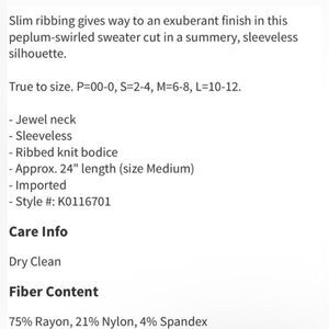 Theory Sleeveless Peplum Sweater in Sky Size Large EUC Career Business Event