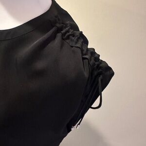 THEORY Beautiful top for a night out on the town. Black, 100% Silk with adjustable cinched shoulder detail. Flowy and elegant.