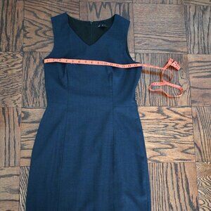 theory, suiting dress, navy and black, sleeveless dress, panel detail, formal dress, office wear, professional style, wool dress, tailored dress, fully lined, dogwood and district closet, above-knee dress, classic silhouette