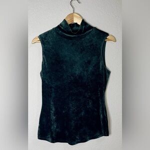 Theory Slim Turtleneck Tank Velour Knit Dark Holly Green Size Medium