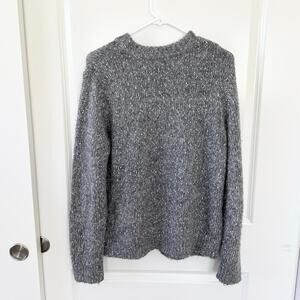 Theory Speckled Crewneck Tweed Alpaca Sweater Gray Large