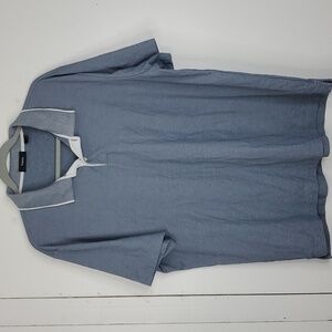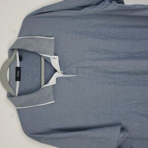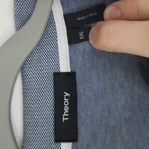 Theory Standard Polo Shirt Pique Cotton Short Sleeve Blue Side Slits Mens XXL