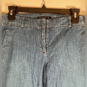 Theory Straight Wide Leg Flare Denim Trousers Jeans Womens 6 Blue Cotton Stretch