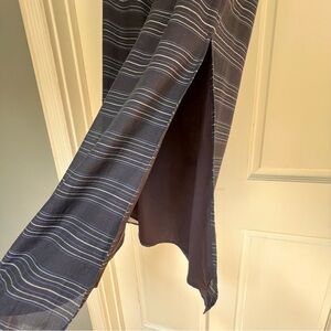 Theory Strapless Nautical Navy Stripe Maxi Dress Size 6 $230 Rare!! Side slit