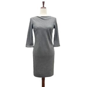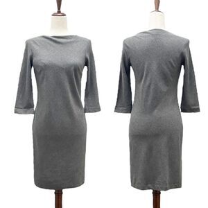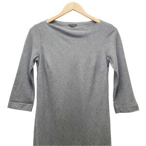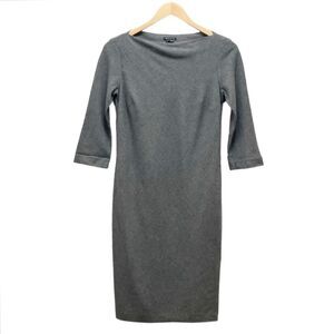 Theory Stretch Wool Boatneck Fitted Sheath Charcoal Gray 3/4 Sleeve Dress Size 2