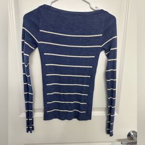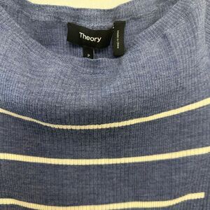 Theory Stripe Boatneck Refine Sweater Merino Wool Blue Ivory P Send Offer!