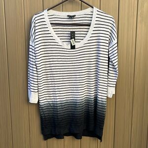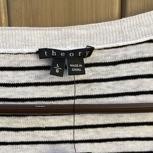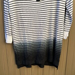 Theory Striped Black White Dip Dye Tunic 3/4 Linen Scoop Neck Sweater Large New
