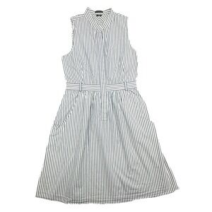 Theory Striped Cotton Sleeveless Shirt Dress Size 10 Blue White