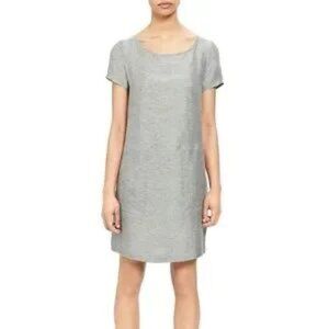 Theory Structured T Twill Linen Short Sleeve Midi Shift Dress Gray Size L Lined