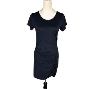 Theory Sunly Black Short Sleeve Shirred Gathered Mini T-shirt Slim Fit Dress