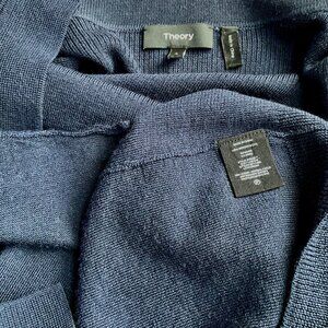 Theory Sweater Cardigan Merino Wool No Close Drape Front Winxie F Navy (L)