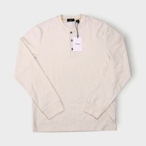 Theory Sweater Mens Size SM Thermal Ivory Henley Crewneck Pullover Pima Cotton