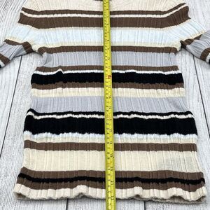 Theory Sweater Sz S Wool Blend White Crushed Velvet Striped Short Sleeve Shirt