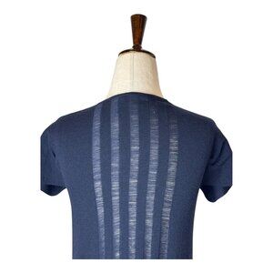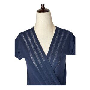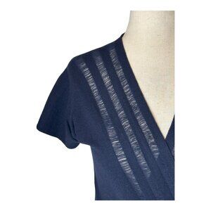 Theory Sweater Women XS Navy Blue Wool Knit Wrap Fringe Detail Luxury Preppy