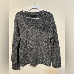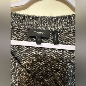 Theory Sweater Womens Medium Black White Marled Cotton Wool Slouchy Minimal