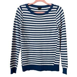Theory Sweater Womens Small White Blue Striped Crewneck Cotton Knit Preppy