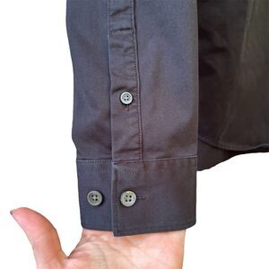 Size: Small Condition: Excellent pre-owned, no notable stains or defects Measurements (approximate): Shoulder to Hem: 27 in Sleeves: 24.5 in Underarm to Underarm: 19 in Description from Brand: A tailored style with minimal detailing, our Sylvain shirt is designed with a structured point collar, and a longer hem that easily tucks into your pant. Cut from an ultra-compact knit with inherent stretch from one of Japans finest mills, it's designed for a comfortable, casual feel and a sharp look. This machine-washable fabric features a wrinkle-resistant construction for optimum shape retention throughout the day. * Structured point collar * Button front * Slim fit * Long sleeves * Wrinkle resistant * True to size * Cotton/polyester