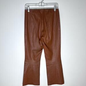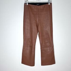 Theory Sz 8 Bristol Leather Pull-On Kick Flare Pants Dark Cognac