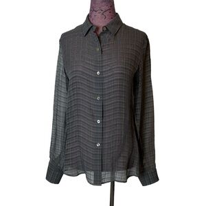 Soft, semi sheer collared blouse from Theory. I’m a size 8 and it’s small on my arms. Ideally for size 4-6.