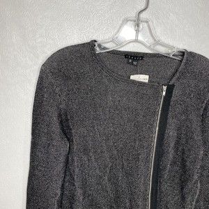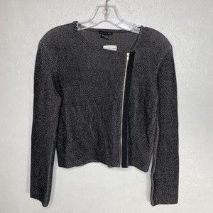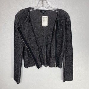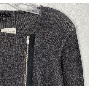 Theory Size P Lioralee Prosecco Black White Speckled Moto Cropped Zip Up Jacket