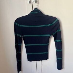 Theory Sz Small Navy Blue Green 100% merino wool turtleneck Neck Sweater stripes