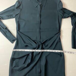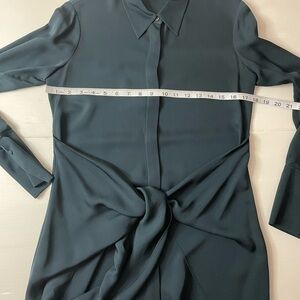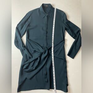 Theory Talbilla Knotted Silk Crepe De Chine Shirt Dress Deep Blue Green Sz 0