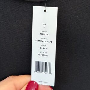 Brand new with tags Theory Talinza sleeveless top in black Admiral Crepe. Features a chic mock neck with front pleat detail, back zip closure, and subtle side slits for ease of movement. Size Large. Timeless, minimalist design—perfect for work or evening wear. Excellent new condition with tags attached.