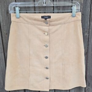 Elevate your style with this chic tan mini skirt. Featuring a stylish button-front design, it's perfect for any occasion.