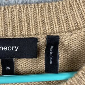 Theory Tan Camel Oversized Crewneck Sweater Medium M Relaxed Fit Pullover
