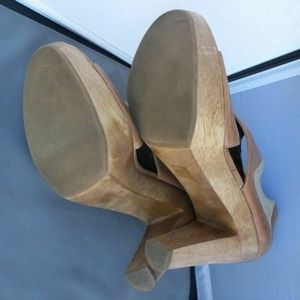 Theory Tan Leather Platform Chunky Heels Booties OPEN TOE shoes 9
