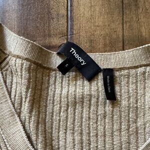 Stylish tan ribbed cardigan with button-up front. Perfect for layering.