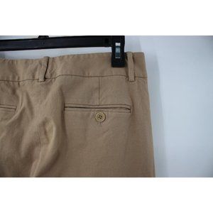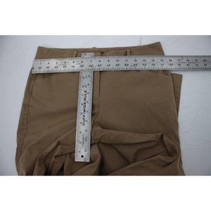 Elegant tan trousers by Theory. Classic design with a straight leg fit. Perfect for versatile styling.