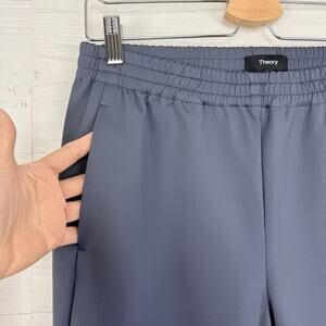 Theory Tapered Leg Pull On Pants Knit Tech Size 6 Gray Stretch Pockets Casual