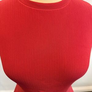 Theory Textured Ribbed Gloss Shell Peplum Women's Sleeveless Top Blouse pink