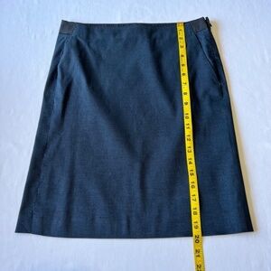 * Features: hidden side zipper, front side pockets, grosgrain ribbon waistband, subtle navy stripe, linen cotton blend with stretchy