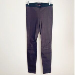 Theory Thaniel lamb Leather Pants brim burgundy cassis purple skinny designer 8