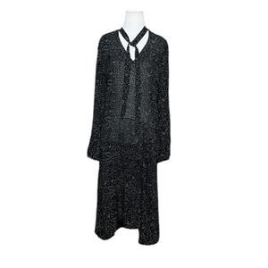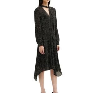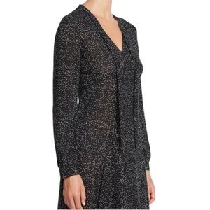 Theory Tie Neck Drape Black Speckle Silk Dress– Sz 4