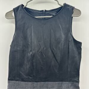 Theory Tirionne C Magistrate Charcoal & Black Leather Wool Sheath Dress Sz 6 NEW