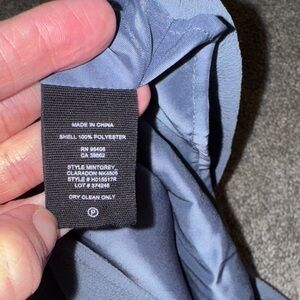 Elegant blue gray tank top by Theory. Features a stylish wrap design. Sleeveless and perfect for layering.