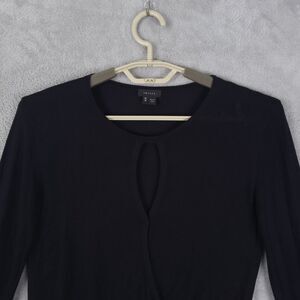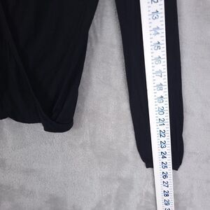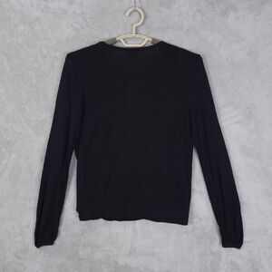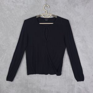 Theory Top Knit Blouse Women Black Sz M Long Sleeve Silk Blend Faux Wrap Keyhole