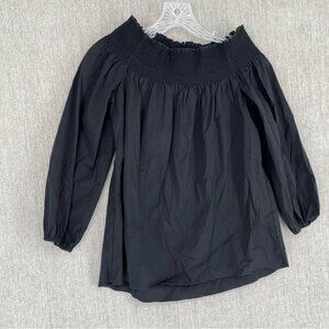 Theory Top Womens Small Black Off Shoulder Babydoll Lightweight Long Sleeve
