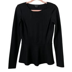 Theory Top Womens Small Black 100% Wool Peplum Knit Minimalist Quiet Luxury