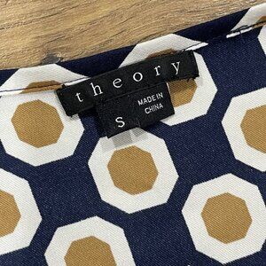 Theory Top Womens Small Silk Geometric Sleeveless Blouse Stretch Scoop Neck