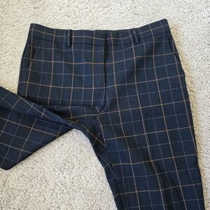 Theory Treeca 2 Tile Check Cropped Pants in Dark Navy Wool Blend Women's Size 6